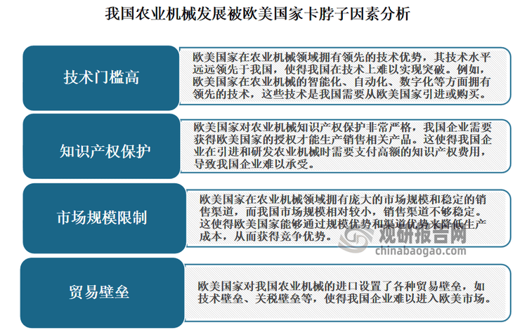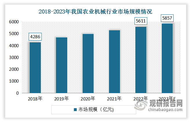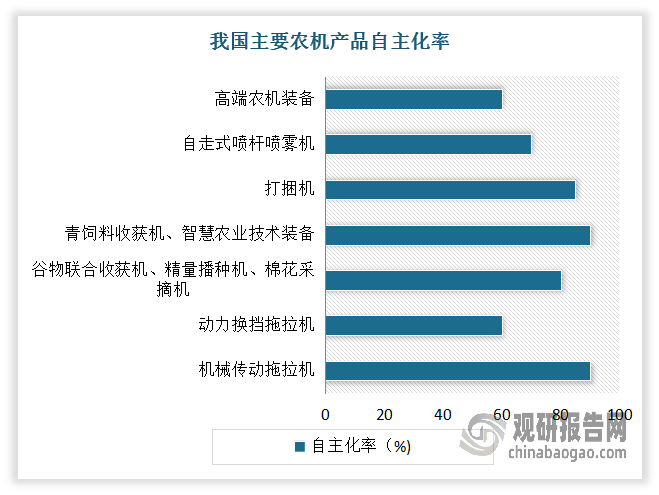 机械总动力持续增加。近年我国农业机械总动力持续增加,到目前曾经成为农业出产中不成或缺的一部门。农人也越来越依赖农业机械进行出产,对于提超出跨越产效率和降低劳动强度有着主要感化。数据显示,2023年我国农机总动力达到11亿千瓦。 进入2024年,我国农机市场全体呈现稳中向好成长态势,农机市场布局不竭优化,但遭到粮食价钱下行、“国三升国四”排放尺度实施、农机购买补助尺度下调等多种要素影响,农机市场仍未走出客岁以来的低迷场合排场。有相关材料显示,2024年6月我国农机市场景气指数(AMI)为41。2%,环比下降1。3个百分点,同比下降1。1个百分点。 近年来正在《农业机械化推进法》、农机购买补助等一系列搀扶政策推进下,我国农业机械化取得了快速成长,实现质的飞跃,不只无效鞭策了国内农机配备程度和农业机械化程度的提拔,并且还支持农业各财产成长的机械化根本逐渐安稳。具体如下?。 正在上述环境下,农机更新换代成为了鞭策农机市场成长前进的主要动力。农机以旧换新政策不只能间接推进农机市场消费,鞭策农机手艺前进和财产升级,并且能提高农业出产效率和质量,帮力农业可持续成长。查询拜访显示,全国每年更新换代的农机价值高达3000亿元。 特别是正在高端农业机械方面,我国仍然存正在较大的手艺瓶颈,例如高压共轨、高效传动、种管收功课、高精度传感、高质智控等效率、靠得住性等手艺实现是国外领先程度的50%摆布,高机能液压系统、细密排种器、高端公用传感器智能节制元器件等零部件次要靠进口(对外依存度仍高达90%),正在严沉配备自从立异能力方面还有短板,全程全面机械化仿照照旧有40%摆布的产物处于空白阶段,外资品牌还占领我国高端农业机械80%以上市场份额。 从农机配备沉点范畴上看,我国正在农业动力配备、从粮出产配备、大经济做物出产配备、农业水土资本操纵配备、丘陵山地农业配备、设备种植手艺及配备、畜禽养殖设备及配备、水产养殖设备及配备、农产物质量分选配备、农业机械人等方面的还取国外先辈程度存正在不少差距。 市场不竭扩大。数据显示,2018-2022年我国农业机械行业市场规模由4286亿元增加至5611亿元,年均复合增加率达8。4%。估量2023年我国农业机械市场规模将正在5857亿元摆布。