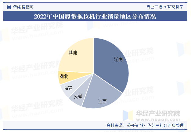 近年来,跟着我国农业现代化的推进,农业机械化程度不竭提高,对履带式拖沓机等农业机械的需求持续增加,出格是正在一些农业发财的地域,这为履带式拖沓机市场供给了广漠的成长空间。2022年,中国履带式拖沓机销量为4057台,五年间发卖市场扩大了三倍。 本文节选自华经财产研究院发布的《2023年中国履带式拖沓机行业现状及瞻望,平均单价逐年上涨「图」》,如需获取全文内容,可进入华经谍报网搜刮查看。 目前,我国履带拖沓机的销量存正在必然区域性,2022年,湖南、江西、安徽、福建和湖北这五个地域贡献超七成销量;此中,湖南和江西的履带拖沓机的销量较着高于其他地域,别离发卖1402台、846台,合计占比55%。 从发卖额来看,我国履带式拖沓机发卖额的变化趋向取其销量的走势环境相符,均是2022年达到了新的高峰,伴跟着各地农机购买补助公示工做的推进,履带式拖沓机行业发卖额无望继续添加。